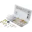 Alle onderdelen zijn vermessingd of wit gecoat, wat zorgt voor een nette afwerking en langdurige bescherming tegen roest. Het assortimentskistje maakt het makkelijk om alles overzichtelijk op te bergen en mee te nemen naar verschillende projecten.