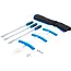 BGS 13-delige bandenlichters- en velgbeschermersset voor motorfietsen. Inclusief kunststof randbescherming, ventielinzetstukken en schroefdraadnasnijder. Lees meer.