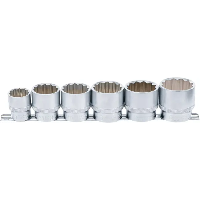 BGS 6-delige 1/2" twaalfkant doppenset (24–38 mm) op metalen rail. Verchroomd, duurzaam chroom-vanadium-staal voor professioneel gebruik. Lees meer.