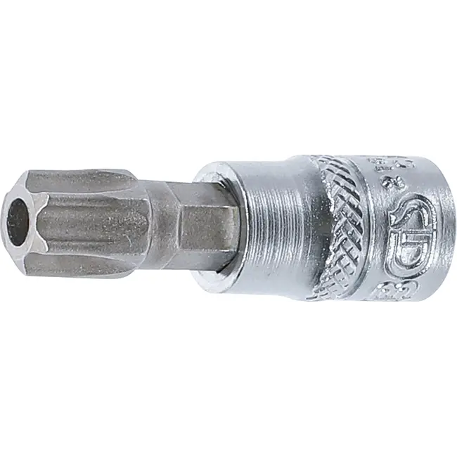 BGS dopsleutelbit 1/4" Torx T50 met boring, gekarteld en gemaakt van chroom-vanadium-staal. Lees meer.