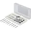 Deze uitgebreide set bevat 18 draadsnijtappen, elk met een voorsnijtang en afwerkingssnijder, en 9 snijplaten in de maten M1,0 tot M2,5, zodat je nauwkeurige en hoogwaardige schroefdraad kunt snijden. De set bevat ook snijplaathouder, verloopstukken en adapters voor flexibel gebruik van de draadsnijtappen.