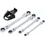 BGS dubbele ratelringsleutelset, plooibaar, 4-delig (E6–E24). Met cardanfunctie en 72-tands ratelmechanisme. Gemaakt van chroom-vanadium-staal, verchroomd en mat afgewerkt. Lees meer.