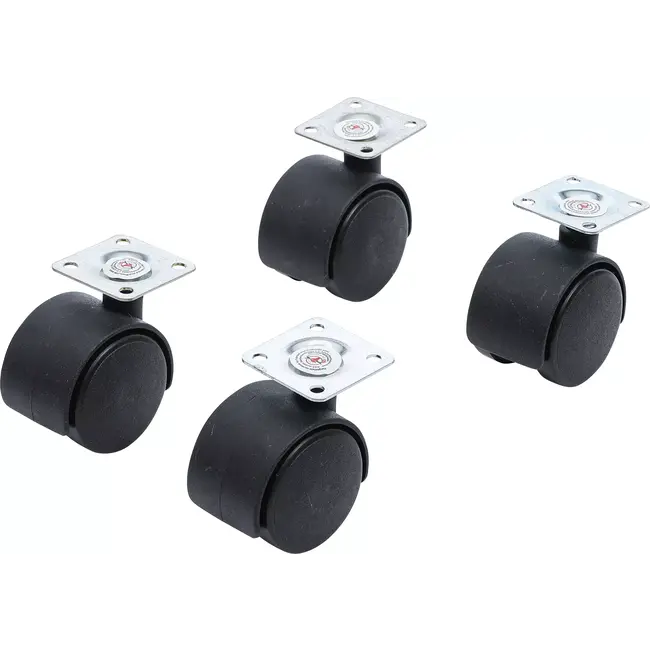 BGS 4-delige dubbele zwenkwielenset Ø40 mm, 360° draaibaar, max. 25 kg per wiel, ideaal voor werkbanken, meubels en mobiele kasten. Lees meer.