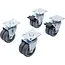 4-delige set: 2 zwenkwielen met rem, 2 zonder rem