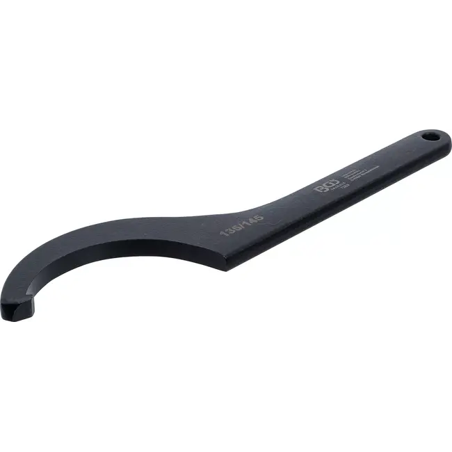 BGS haaksleutel met neus 135–145 mm voor kroonmoeren. Robuust en ergonomisch gereedschap met gefosfateerde afwerking voor professioneel gebruik. Lees meer.