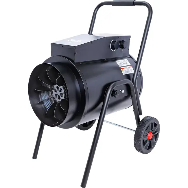 BGS elektrische heteluchtverwarmer 15 kW, verrijdbaar met transportwagen. Geschikt voor grote ruimtes en bouwwerven. 2 standen en thermostaat, krachtstroom. Lees meer.