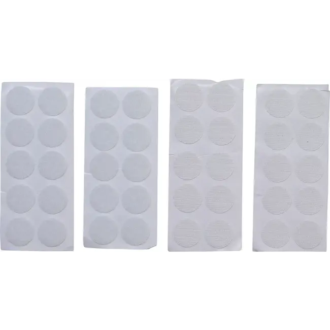 De witte kleur en compacte diameter van 20 mm maken de klitpunten geschikt voor diverse oppervlakken en toepassingen in huis, kantoor of werkplaats. Dankzij het zelfklevende ontwerp kunnen de pads eenvoudig worden bevestigd en verwijderd zonder beschadiging van het oppervlak.