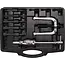 De set bevat een slaghamer van 910 g en een twee-armige trekker met 125 mm trekbreedte, evenals vijf trekkerdoornen voor binnenlagers van verschillende afmetingen (6×8 mm tot 23×30 mm). Voor speciale toepassingen zijn adapters aanwezig voor het uittrekken van componenten met binnenschroefdraad M6, M8 en M10. Een reserve spreiddoorn is inbegrepen voor extra flexibiliteit tijdens het werk.
