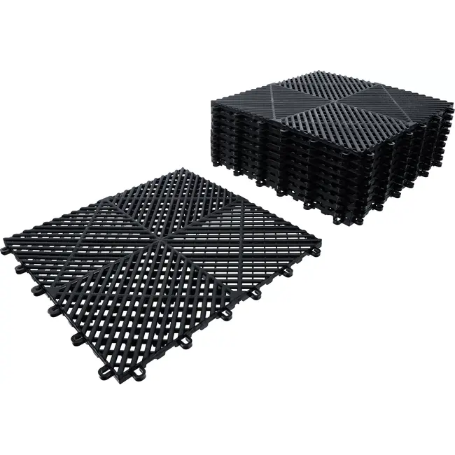 BGS Kunststoftegels 400 x 400 x 18 mm, 10 delig. Eenvoudig te klikken, water- en vuilafvoer, geschikt voor garage, terras, balkon en magazijn. Lees meer.