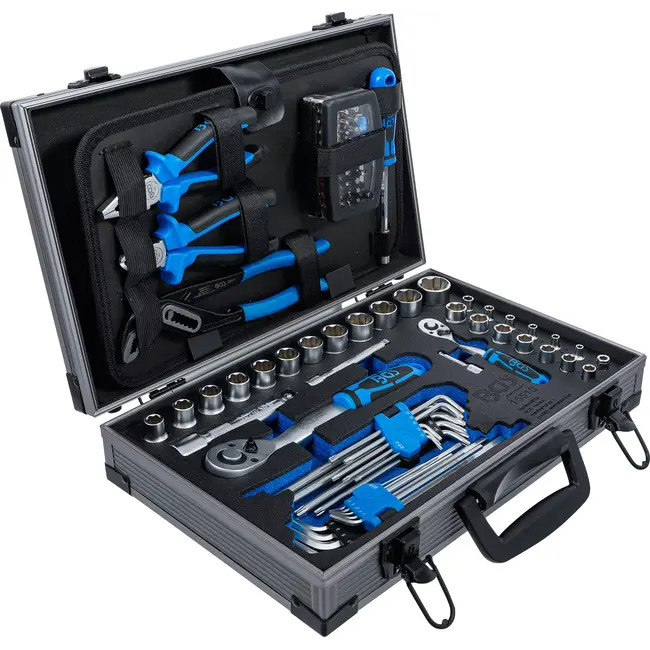BGS universele gereedschapskoffer 85-delig in ABS-koffer. Inclusief dopsleutels, ratels, tangen en stiftsleutels. Sterk, overzichtelijk en ideaal voor werkplaats en thuis. Lees meer.