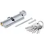 De set wordt geleverd met 5 sleutels en bevestigingsschroeven voor eenvoudige installatie. De cilinder heeft een lengte van 90 mm met een gelijke verdeling van 45/45 mm aan beide zijden en een knop van 22 x 18 mm gemaakt van aluminium. De vernikkelde afwerking zorgt voor een duurzame bescherming tegen corrosie en een stijlvolle uitstraling.