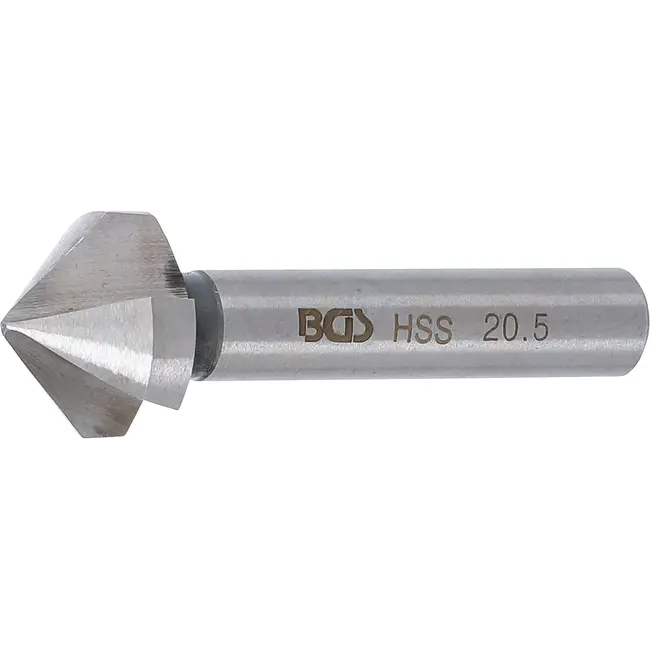 BGS Verzinkboor HSS Ø 20,5 mm, DIN 335 vorm C, 90° verzinkhoek, cilindrische steel, 3 snijranden, voor professioneel vlak verzinken van schroefgaten. Lees meer.