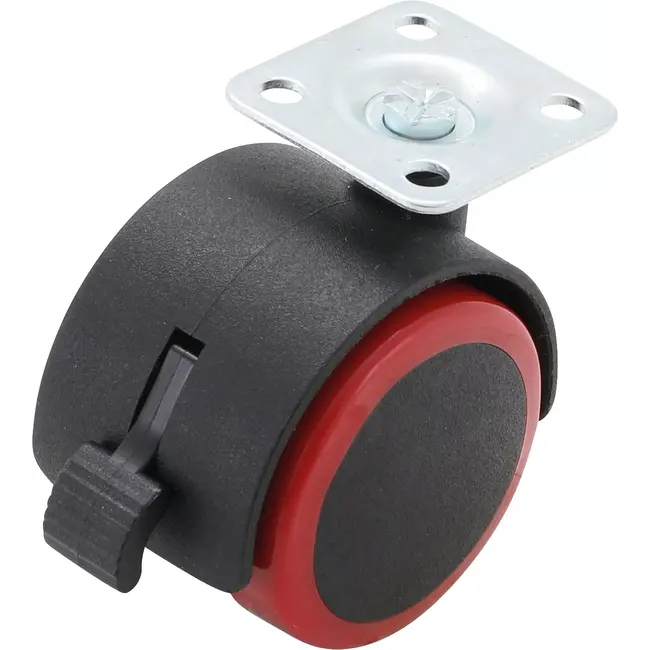 BGS zwenk-duowiel 50 mm, rood/zwart, PU, zwenkbaar en stabiel met rem. Max. draagvermogen 30 kg. Ideaal voor gereedschapswagens en lichte meubels. Lees meer.