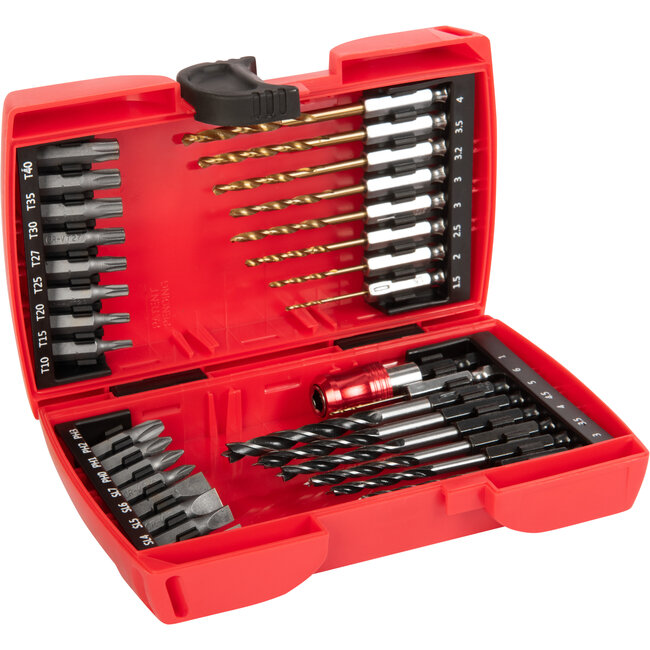 Zoek je een complete basis voor je gereedschapskist? Deze 32-delige set biedt een optimale selectie van alle gangbare boren en bits. Of je nu een schilderij ophangt of een meubelstuk in elkaar zet, met deze set grijp je nooit mis.