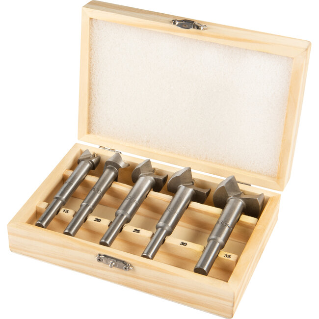 De boren hebben een standaard 8 mm schacht en passen op vrijwel elke boormachine. Ze worden geleverd in een praktische houten doos, waardoor je gereedschap altijd georganiseerd en beschermd blijft. Je gebruikt deze Forstnerboren voor zuivere gaten zonder splinters in diverse houtsoorten.